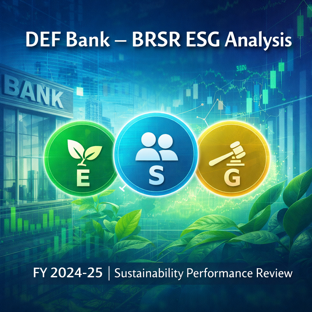 This report provides a detailed ESG analysis of DEF Bank’s Business Responsibility and Sustainability Report (BRSR) for FY 2024–25. It examines the bank’s sustainability disclosures across key Environmental, Social, and Governance parameters, highlighting its governance framework, ESG oversight structure, and operational sustainability initiatives. The analysis also reviews areas such as gender diversity targets, priority sector lending, and improvements in ESG reporting practices over recent years. The report also highlights key gaps in environmental disclosures, particularly the absence of financed emissions data and limited transparency around climate risk integration in lending practices.