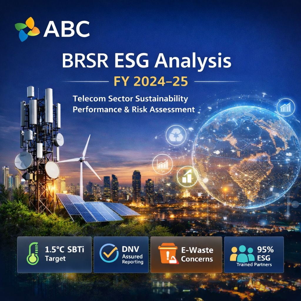 This report presents a comprehensive ESG analysis based on BRSR disclosures for FY 2024–25. The study evaluates environmental performance, social responsibility, governance practices, and data transparency within the telecom sector. The analysis highlights sustainability initiatives, climate commitments aligned with the 1.5°C SBTi pathway, and the role of assurance frameworks such as DNV in strengthening ESG credibility. It also identifies improvement areas including e-waste transparency, Scope 3 emission disclosures, and value chain sustainability metrics.